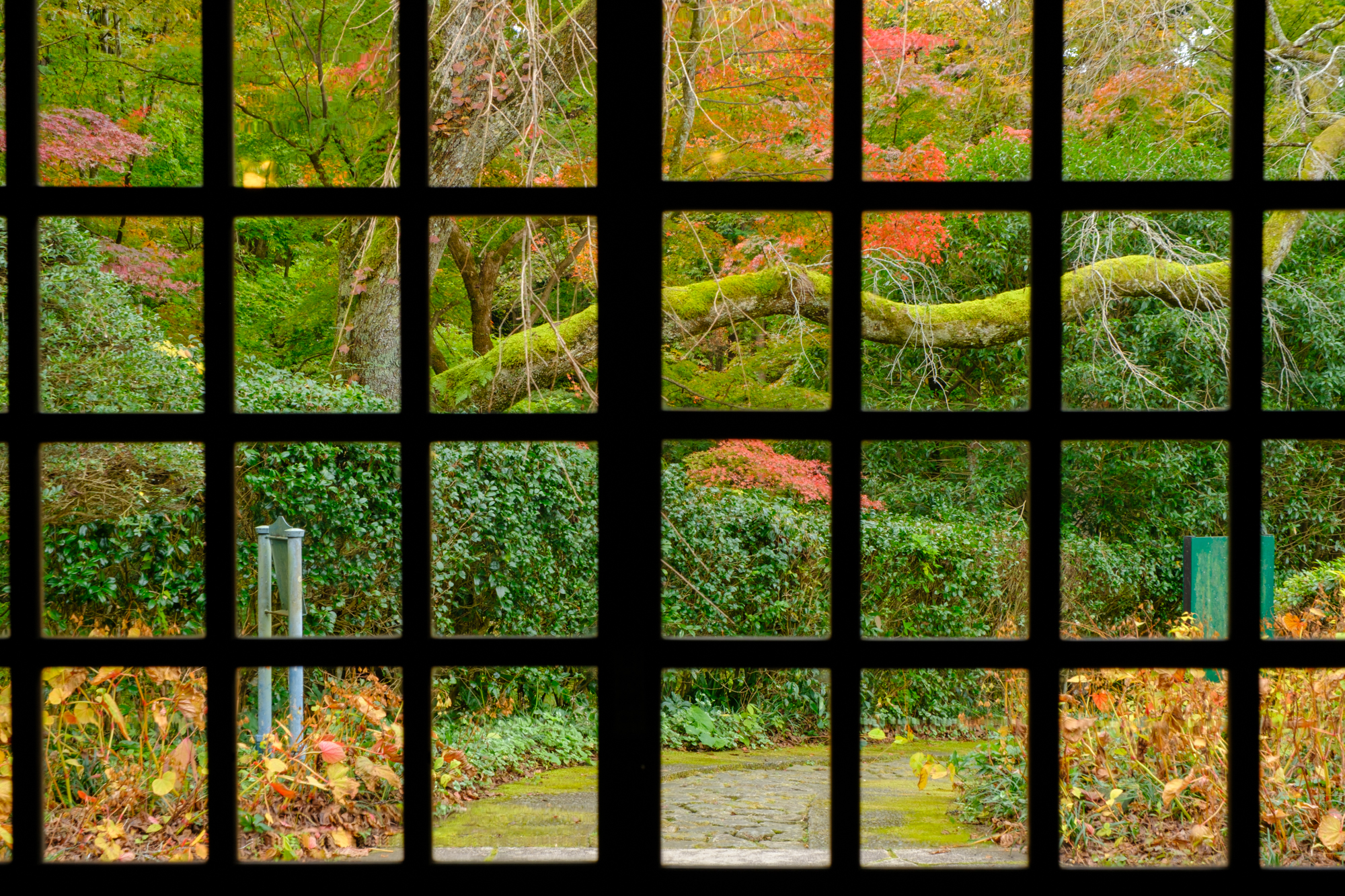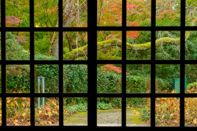 格子窓の奥の秋